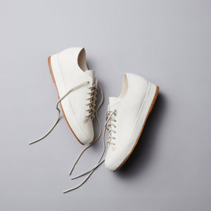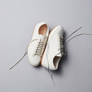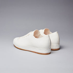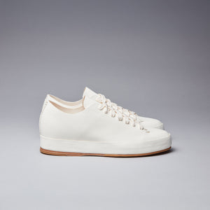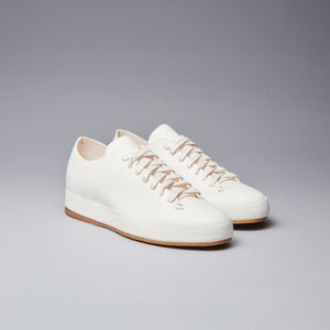 This handsewn low top classic court sneaker is stripped down to its essential features and restitched entirely by hand. Raw, unlined edges highlight the simplicity of natural materials, while exposed stitching at the tongue and heel are a discreet reminder of the human craftsmanship behind the construction of every pair. Each one-piece leather upper is cut from exceptionally soft, vegetable-dyed semi-cordovan leather. The natural cork midsole wicks away moisture without absorbing odors, and each leather outsole is attached by hand using an advanced Goodyear welt stitching technique. Vibram rubber sheeting at the front and back of each outsole improves traction and increases the longevity of each sole, making the Handsewn Low not only comfortable, but also durable.